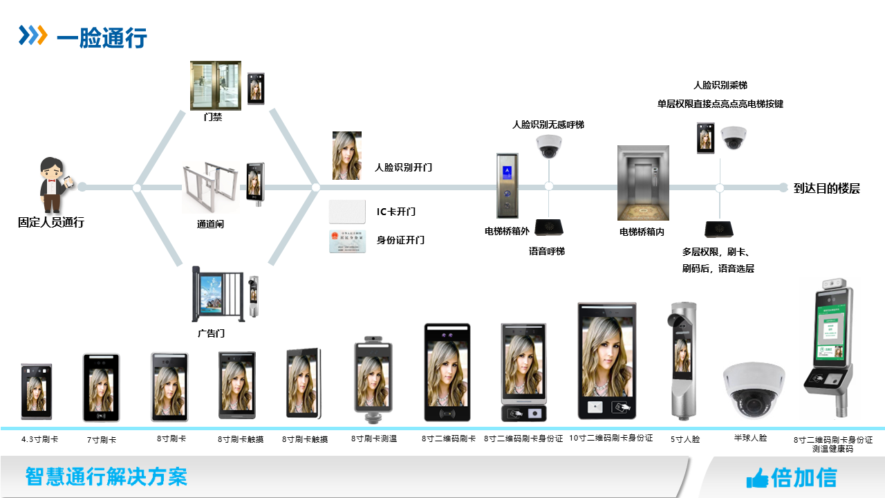 在高端住宅、寫字樓、醫(yī)院、學(xué)校、企事業(yè)單位等場(chǎng)景,通過人臉識(shí)別無感通行門禁、閘機(jī)、招梯和乘梯。人臉識(shí)別支持本地部署服務(wù)器或設(shè)備上云部署。同時(shí)可搭配二維碼模塊,實(shí)現(xiàn)訪客人臉或者二維碼通行。